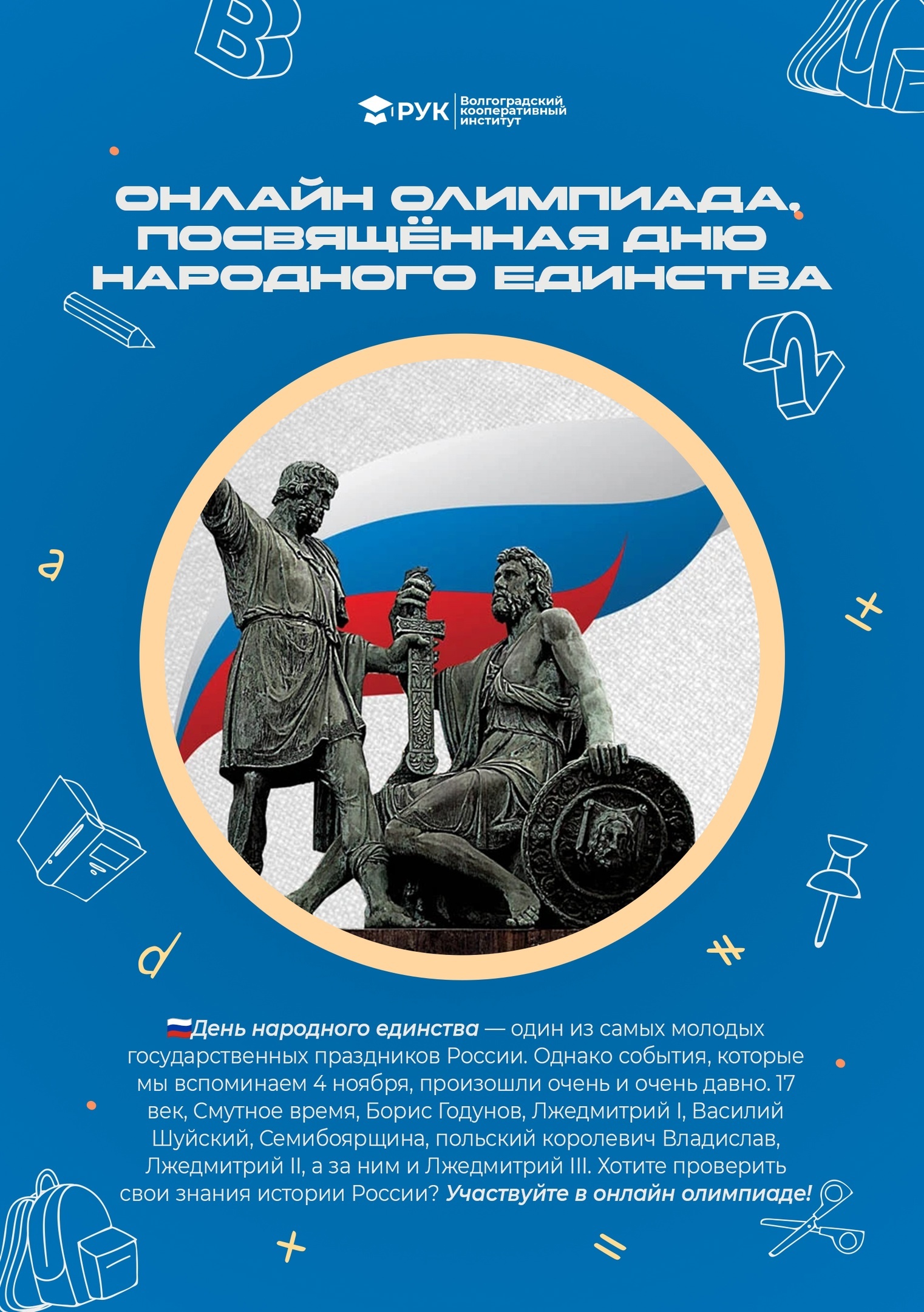 1 ноября 2024 г. в Волгоградском кооперативном институте стартует Олимпиадный марафон, для учащихся 9-11 классов общеобразовательных организаций РФ и учащихся средних профессиональных организаций РФ.